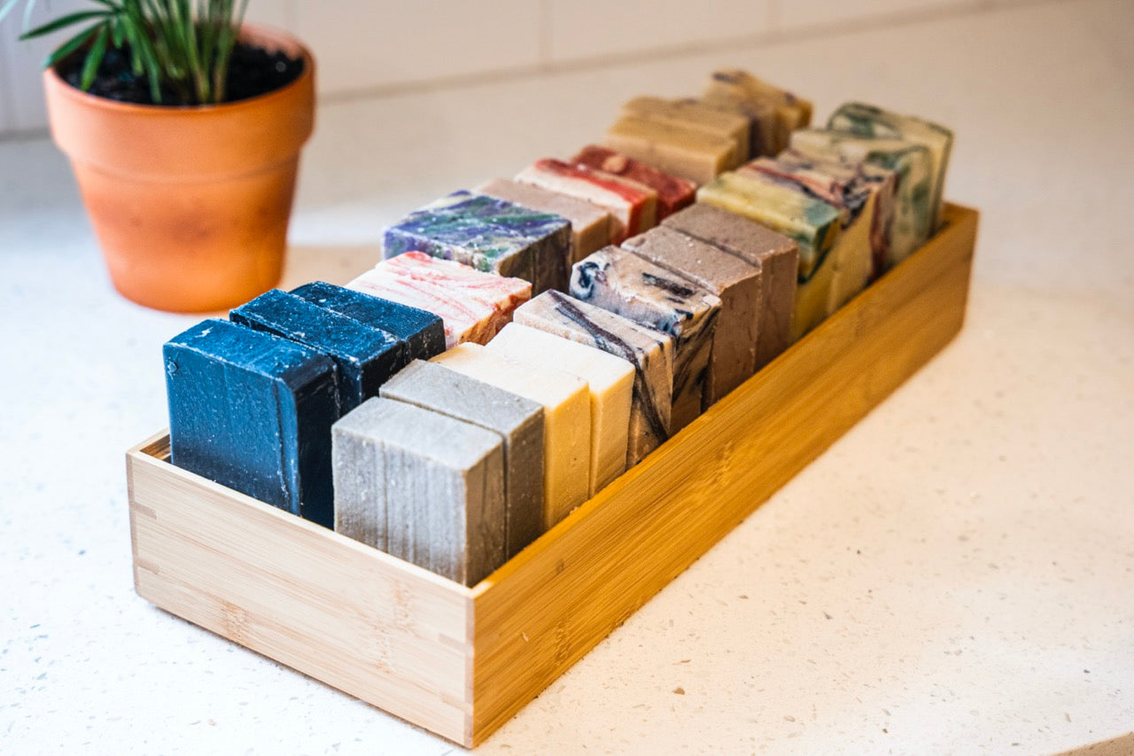 Ingredients: Olive Oil, Grapeseed Oil, Coconut Oil, Sustainably-sourced Palm Kernel Oil, Sodium Hydroxide, Water, Shea Butter, Cocoa Butter, Eucalyptus Essential Oil, Peppermint Essential Oil, Spearmint Leaves.